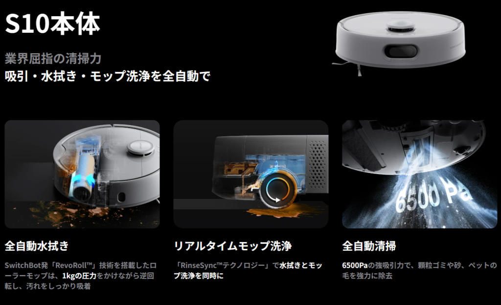 今年5月に発売開始となった最新モデル「SwitchBot お掃除ロボット S10」は、