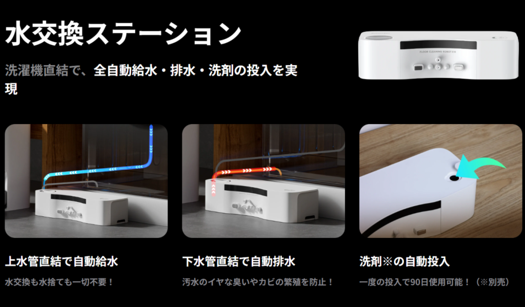 - 水拭きモップのための給水・排水も全自動で手間なし