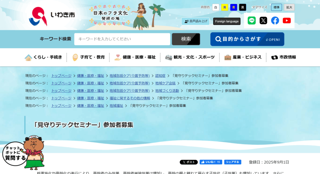 いわき市で10/4に「見守りテックセミナー」開催!